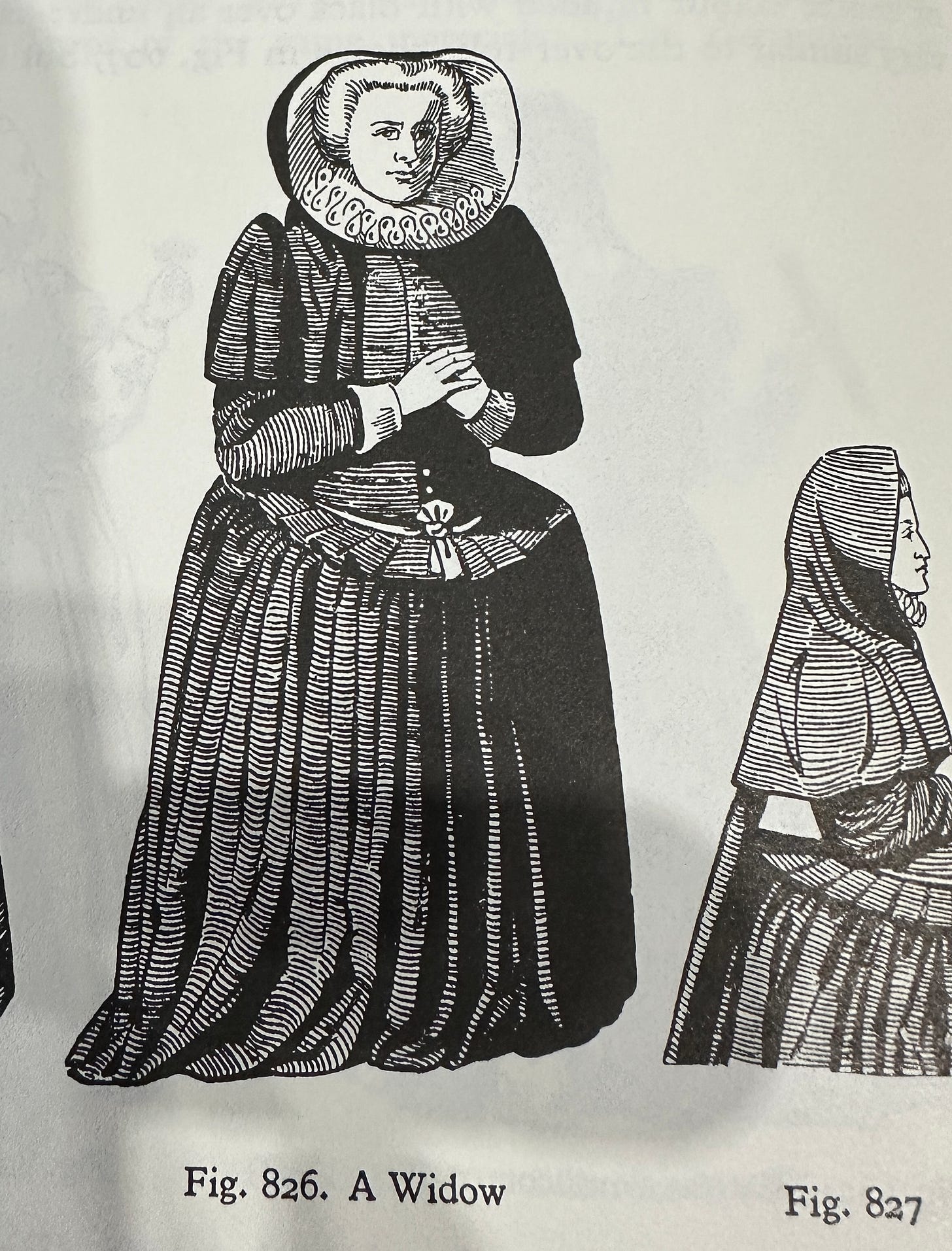 Herbert Norris reproduces this image of Constantia, widow of Sir Thomas Lucy Knight, who died in 1603, in his book Tudor Fashion 1as an example of widow’s garb. A hood, lined and wired, frames Lady Lucy’s face; it is very similar to Elizabeth’s hood on the Seymour monument. Constantia also has a ‘veil’ or cape hanging over her shoulder, similar to the folds of cloth around Elizabeth’s shoulders.