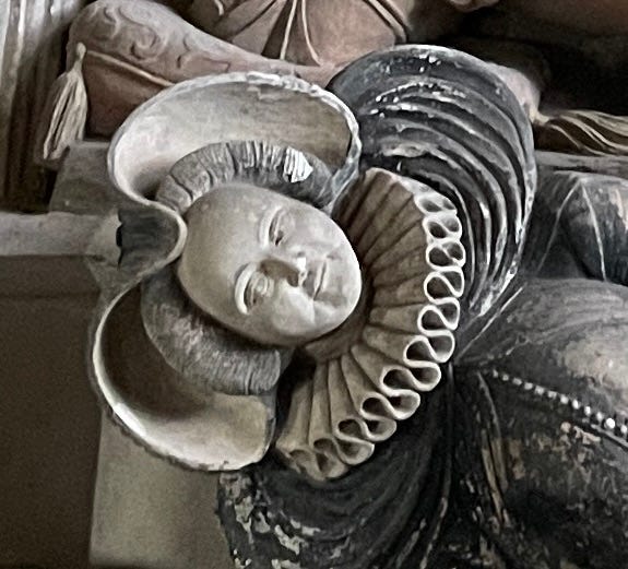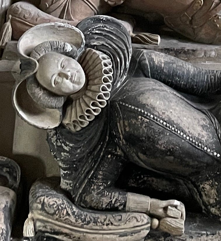 Here is Elizabeth in the Seymour monument at St. Mary’s Church, Berry Pomeroy.